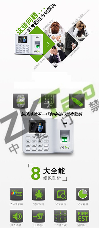 中控X10考勤門禁 自主彩屏打卡機
