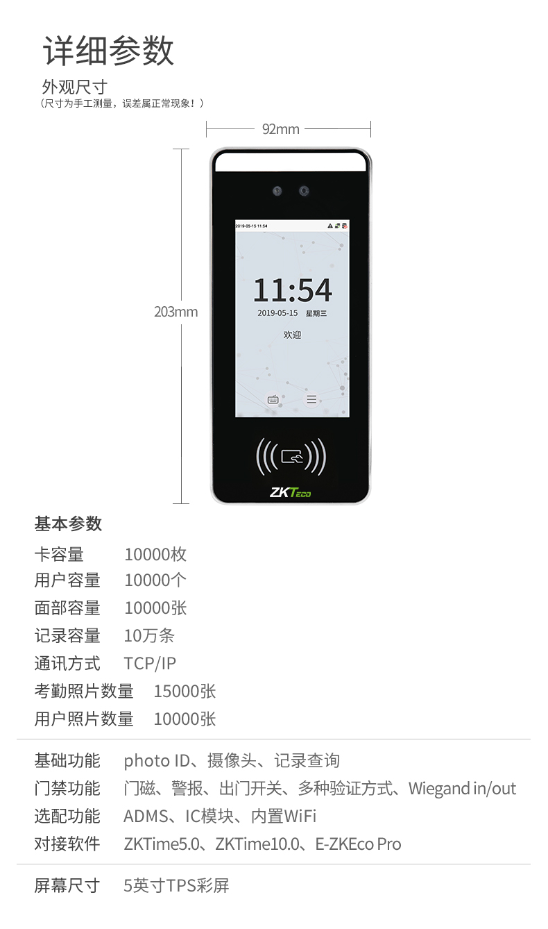 基礎功能       記錄查詢、Photo ID、帶攝像頭