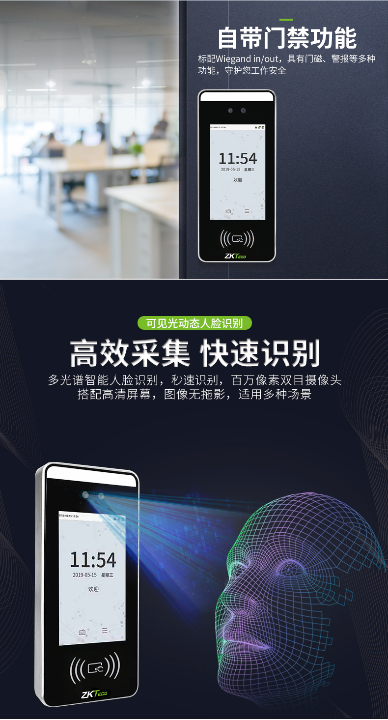 非接觸式刷卡門禁多光譜智能考勤機